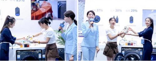 在AWE2023現(xiàn)場亮相的海爾“精華洗”洗衣機,是行業(yè)目前最具革新性的產(chǎn)品方案。為了讓用戶能夠直觀地體驗“精華直噴”科技,海爾洗衣機在現(xiàn)場開展了“2分鐘洗凈小熊挑戰(zhàn)”,讓用戶親眼見證“精華洗”又快又干凈的洗護效果。 工作人員將小熊沾上醬油、番茄醬等污漬,啟動海爾“精華洗”洗衣機清洗。2分鐘后,工作人員取出小熊,可以看到小熊已經(jīng)完全清洗干凈。這也說明,海爾“精華洗”洗衣機可以輕松洗凈衣服上的污漬,解決日常生活中的洗衣難題。