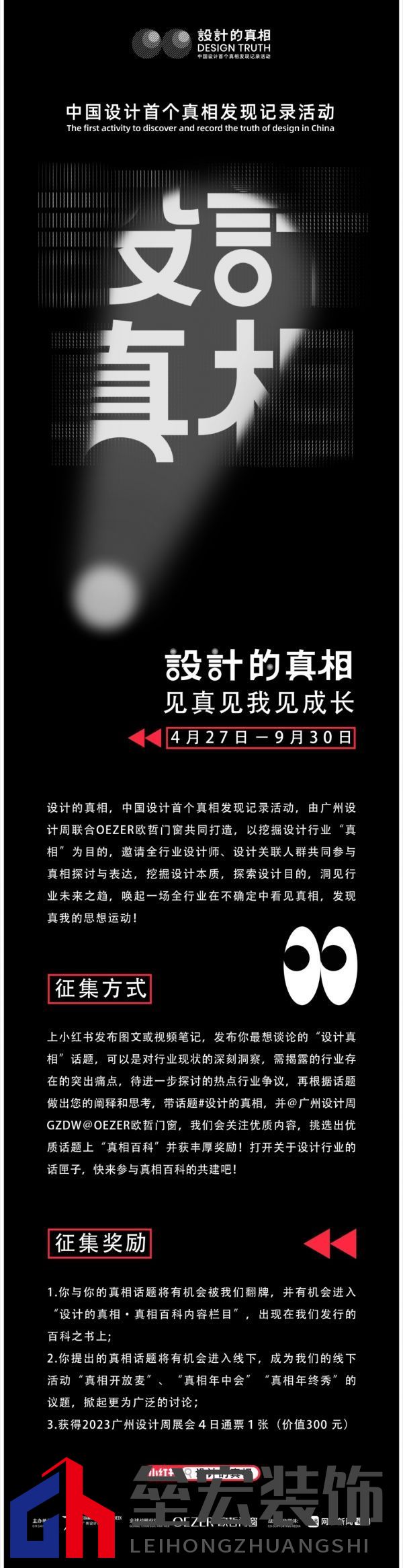 | 摘要:征集每位設(shè)計(jì)人的聲音,也就獲得了洞見真相的能力  設(shè)計(jì)無處不在。設(shè)計(jì)是為更美好的世界、設(shè)計(jì)是解決問題、設(shè)計(jì)是重新塑造日常。 設(shè)計(jì)身披榮光、背向誤解,常常被贊美、又常常被忽略或過度解讀。 但設(shè)計(jì)就是設(shè)計(jì),每一位敢說真話、勇尋真相的設(shè)計(jì)人,無不共同描繪出設(shè)計(jì)最真實(shí)的模樣!     在設(shè)計(jì)被不斷談?wù)摰漠?dāng)下,從行業(yè)動(dòng)態(tài)到個(gè)體經(jīng)驗(yàn),從業(yè)主、品牌方、設(shè)計(jì)師到行業(yè)關(guān)聯(lián)人群的多元視角,是時(shí)候找出真相了。 這次,我們想說點(diǎn)真話、聊點(diǎn)平時(shí)聽不到的。 這次,我們想用文字記錄思想,將行業(yè)真話收錄在一個(gè)專屬于設(shè)計(jì)的“真相百科”里。  全新IP項(xiàng)目「設(shè)計(jì)的真相」全球發(fā)布禮于4月21日落幕意大利,廣州設(shè)計(jì)周×OEZER歐哲門窗將開放的、真實(shí)的、思辨的真相精神帶到設(shè)計(jì)之都米蘭。 從沉默到表達(dá),真相不再模糊,從立足國(guó)內(nèi)到勢(shì)能國(guó)際,力量不再單薄。   人們對(duì)于設(shè)計(jì)行業(yè),有著太多的好奇、質(zhì)疑與不確定,可以肯定的一點(diǎn)是,我們今天所處的美好世界,是由一些勇于向前和敢于嘗試的設(shè)計(jì)師創(chuàng)造的,他們是精銳的“先行者”、是撕碎標(biāo)簽的“叛逆者”,也是較真的“思辯者”、真誠(chéng)的“平常人”。 他們探討和表達(dá)真相,并不僅限于對(duì)行業(yè)的痛點(diǎn)、秘密、不完美發(fā)幾句牢騷,而是憑著信仰之尺,以期助力中國(guó)設(shè)計(jì)師自我成長(zhǎng)及設(shè)計(jì)圈層的長(zhǎng)遠(yuǎn)發(fā)展!                   待解決的問題很多,各位自有心中答案;待發(fā)掘的真相很多,期待你能打開新的話題。 我們發(fā)起“真相百科”征集,聯(lián)動(dòng)權(quán)威媒體加持助力,持續(xù)生產(chǎn)話題內(nèi)容造勢(shì),是想以共創(chuàng)為原點(diǎn)延續(xù)思考,為設(shè)計(jì)關(guān)聯(lián)人群提供全新的觀點(diǎn)表達(dá)與交流的契機(jī),共同講述與揭露那些設(shè)計(jì)行業(yè)背后的秘密。最終,征集而來的“設(shè)計(jì)真相”將會(huì)收錄在“真相百科”里發(fā)行,讓真相價(jià)值有跡可循。  END |