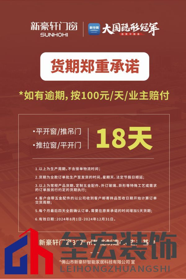 03.智造讓實(shí)惠 質(zhì)效雙保障 品質(zhì)好窗為何只賣799元?低價(jià)產(chǎn)品是否會(huì)有好物?不要擔(dān)心,新豪軒為你揭曉好窗的鉅惠密碼。 不同于“低價(jià)低配”路線,新豪軒開啟“智造讓利”模式。新豪軒背靠亞洲航母級門窗生產(chǎn)基地,采用數(shù)智化軟硬件設(shè)備 + 精益化高效管理模式,從根本上實(shí)現(xiàn)降本增效,形成良性生產(chǎn)循環(huán),從而持續(xù)性地讓利消費(fèi)者。 在降價(jià)不降配同時(shí),新豪軒還用“兩大首發(fā)”消費(fèi)者提供質(zhì)效雙保障:獨(dú)家首發(fā)的《質(zhì)量承諾書》圍繞產(chǎn)品用材、性能參數(shù)、質(zhì)保服務(wù)等消費(fèi)者關(guān)心的問題作出明確承諾,讓工藝選材透明化、消費(fèi)保障書面化;行業(yè)首發(fā)的《貨期承諾書》列明系統(tǒng)窗生產(chǎn)周期僅需18天,大大提高了整體交付效率,讓消費(fèi)者更快用上好門窗。
