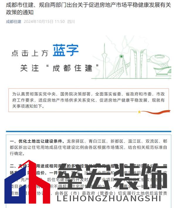 | 10月15日,成都多部門聯(lián)合發(fā)布新政,取消“滿五、滿二”限售規(guī)定,取得《不動(dòng)產(chǎn)權(quán)證書》即可交易;二孩及以上家庭新購(gòu)住房按首套辦理商業(yè)貸款;公積金貸款額度提高至120萬元,支持購(gòu)房提取代際互助,取消省內(nèi)異地購(gòu)房提取限制。此舉旨在促進(jìn)房地產(chǎn)市場(chǎng)平穩(wěn)健康發(fā)展。 成都樓市再迎利好消息。 10月15日上午,成都市住房和城鄉(xiāng)建設(shè)局、成都市規(guī)劃和自然資源局、成都市發(fā)展和改革委員會(huì)、成都市公安局、成都住房公積金中心聯(lián)合召開涉及房地產(chǎn)、落戶等方面的政策溝通會(huì)。隨后,“成都住建”和“成都住房公積金”微信公眾號(hào)先后發(fā)布相關(guān)政策調(diào)整的通知。 其中,成都市住建、規(guī)自兩部門出臺(tái)《關(guān)于促進(jìn)房地產(chǎn)市場(chǎng)平穩(wěn)健康發(fā)展有關(guān)政策的通知》(以下簡(jiǎn)稱通知)指出,在成都新購(gòu)商品住房(除定向銷售項(xiàng)目外)和二手住房的,取得《不動(dòng)產(chǎn)權(quán)證書》后即可上市交易。同時(shí),成都市范圍內(nèi),二孩及以上家庭新購(gòu)住房辦理商業(yè)貸款時(shí)均認(rèn)定為購(gòu)買首套住房,支持商業(yè)銀行按照認(rèn)定套數(shù)辦理住房貸款。該政策即日起正式實(shí)施。 成都住房公積金中心印發(fā)通知,對(duì)成都住房公積金貸款和提取政策進(jìn)行了調(diào)整,涉及提高最高貸款額度、支持購(gòu)房提取代際互助、提取支持由租轉(zhuǎn)購(gòu)、取消省內(nèi)異地購(gòu)房提取限制、支持商轉(zhuǎn)公等五項(xiàng)重要支持政策,并自即日起正式實(shí)施。 取消限售,取證即可上市交易 根據(jù)《通知》,成都市范圍內(nèi)新購(gòu)商品住房(除定向銷售項(xiàng)目外)和二手住房的,取得《不動(dòng)產(chǎn)權(quán)證書》后即可上市交易,在此之前已納入再交易管理范圍的住房仍按原政策執(zhí)行。新購(gòu)商品住房以網(wǎng)簽備案時(shí)間為準(zhǔn),新購(gòu)二手住房以不動(dòng)產(chǎn)轉(zhuǎn)移登記登簿時(shí)間為準(zhǔn)。 同時(shí),在成都市范圍內(nèi),二孩及以上家庭新購(gòu)住房辦理商業(yè)貸款時(shí)均認(rèn)定為購(gòu)買首套住房,支持商業(yè)銀行按照認(rèn)定套數(shù)辦理住房貸款。 來源:成都住建微信公眾號(hào)  《通知》還對(duì)土地出讓政策進(jìn)行了優(yōu)化。 一是優(yōu)化土地出讓建設(shè)條件。龍泉驛區(qū)、青白江區(qū)、新都區(qū)、溫江區(qū)、雙流區(qū)、郫都區(qū)新出讓住宅用地成品住宅建設(shè)比例由各區(qū)根據(jù)市場(chǎng)情況,結(jié)合相關(guān)規(guī)范標(biāo)準(zhǔn)自行確定。 二是支持不同用途或相同用途的多宗經(jīng)營(yíng)性建設(shè)用地組合供應(yīng),實(shí)行同場(chǎng)公告、同場(chǎng)競(jìng)買、同時(shí)應(yīng)價(jià)、一并競(jìng)得。其中,涉及產(chǎn)業(yè)用地和住宅類用地組合供應(yīng)的,應(yīng)堅(jiān)持“先產(chǎn)業(yè)開發(fā)、后住宅建設(shè)”的開發(fā)時(shí)序,產(chǎn)業(yè)項(xiàng)目整體并聯(lián)竣工驗(yàn)收合格前,項(xiàng)目商品住房銷售面積不得超過住宅可售面積的70%。上述要求統(tǒng)一納入國(guó)有建設(shè)用地項(xiàng)目履約協(xié)議書,由各區(qū)(市)縣政府(管委會(huì))切實(shí)履行土地供后監(jiān)管責(zé)任。 三是優(yōu)化商服用地規(guī)劃布局。支持各區(qū)(市)縣結(jié)合片區(qū)功能開展片區(qū)規(guī)劃論證工作,對(duì)涉及商業(yè)服務(wù)業(yè)用地調(diào)整的,應(yīng)結(jié)合現(xiàn)狀和規(guī)劃商業(yè)服務(wù)業(yè)用地進(jìn)行評(píng)估,綜合分析片區(qū)商業(yè)、商務(wù)用地存量規(guī)模及人均規(guī)劃商業(yè)用地指標(biāo)等情況,從市場(chǎng)需求、規(guī)劃布局、宜居宜業(yè)等方面進(jìn)行論證,在落實(shí)總體結(jié)構(gòu)性要求、滿足公服承載力的前提下,優(yōu)化商業(yè)服務(wù)業(yè)用地規(guī)模和布局。 四是成都市范圍內(nèi)新供應(yīng)經(jīng)營(yíng)性用地,簽訂出讓合同之日起1個(gè)月內(nèi)須繳清全部土地出讓價(jià)款的50%,剩余價(jià)款可按出讓方案要求,在簽訂出讓合同之日起1年以內(nèi)繳清,須按合同約定支付利息。其中,經(jīng)報(bào)自然資源部備案作為低效用地再開發(fā)試點(diǎn)范圍內(nèi)的新供應(yīng)經(jīng)營(yíng)性用地,剩余價(jià)款可按出讓方案要求,在簽訂出讓合同之日起1年內(nèi)繳清,可不計(jì)收利息。 五是成都市范圍內(nèi)新供應(yīng)經(jīng)營(yíng)性建設(shè)用地不再收取項(xiàng)目開發(fā)建設(shè)履約保證金。對(duì)已收取的存量開發(fā)建設(shè)履約保證金,各區(qū)(市)縣政府(管委會(huì))應(yīng)結(jié)合宗地履約情況予以部分退還、全部退還或允許企業(yè)以銀行保函替換。同時(shí),各區(qū)(市)縣政府(管委會(huì))應(yīng)建立企業(yè)項(xiàng)目履約踐諾及信用分級(jí)分類監(jiān)管機(jī)制,將相關(guān)違規(guī)違約行為納入信用檔案管理。 公積金最高貸款額度提至120萬元 本次成都住房公積金政策調(diào)整涉及提高最高貸款額度、商轉(zhuǎn)公等五項(xiàng)重要支持政策。 提高最高貸款額度方面,本次政策調(di