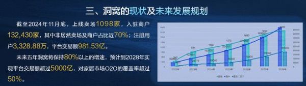 截至2024年11月底,洞窩平臺已上線賣場1098家,入駐商戶達132,430家,其中非居然賣場及商戶占比近70%。亮眼的數(shù)據(jù),充分展示了洞窩平臺在家居產(chǎn)業(yè)的強大影響力和市場認可度。未來,洞窩平臺也將以數(shù)智升級為核心驅動力,保持高速增長,提升家居市場O2O的覆蓋率。