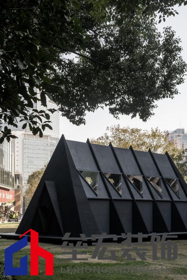 建筑采用預(yù)制組件體系,以工業(yè)化手法提升建造效率,僅用八天工廠預(yù)制、三天現(xiàn)場搭建便得以完成主體結(jié)構(gòu)。三角形作為最具穩(wěn)定性的幾何符號,賦予空間堅實的支撐,而隱藏于結(jié)構(gòu)中的線路設(shè)計,則確保視覺上的純粹與極簡。