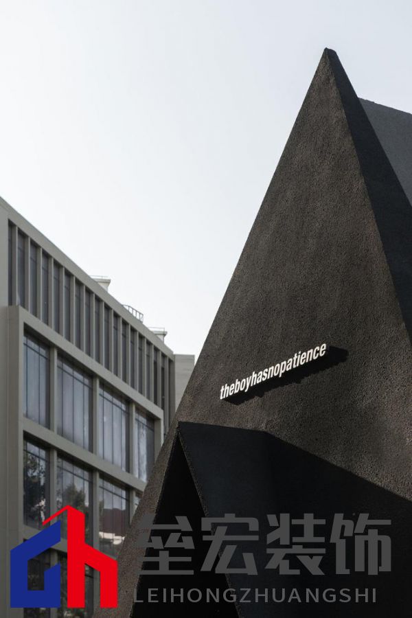 夜幕降臨,幾何體量沉穩(wěn)靜立于城市肌理之中。設(shè)計師從TBHNP標志性的黑灰色調(diào)中提取出“暗物質(zhì)美學(xué)”,以深灰主色隱喻品牌的叛逆基因。粗糲的肌理涂裝包裹建筑內(nèi)外,從視覺上勾勒完整的敘事語境。