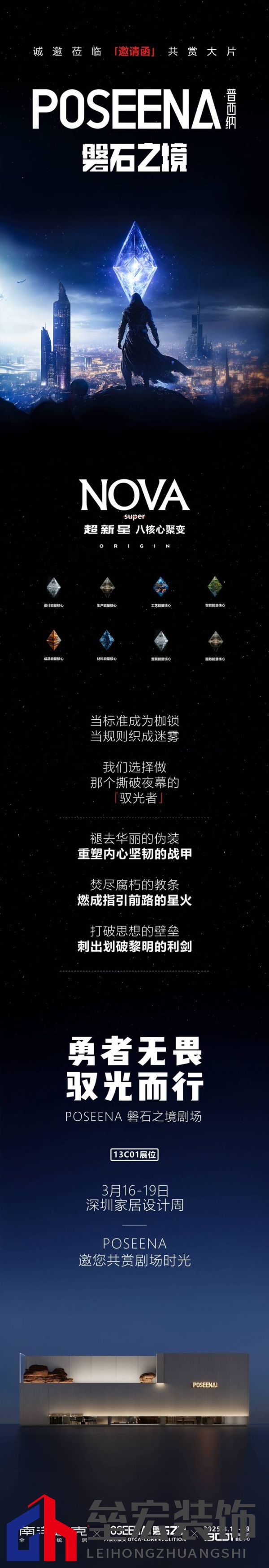 ??歷經智慧沉淀、創(chuàng)新突破與多維探索,POSEENA 并未止步,而是進一步推出了“超新星 | NOVA 計劃”。這并非對未來的空想,而是一場“正在發(fā)生的實景推演,為家居行業(yè)帶來全新思考與變革。 ??2025深圳設計周·POSEENA「磐石之境」展廳將完美展示此計劃的魅力與精髓。該計劃以全案系統(tǒng)家居為核心,整合設計、生成、工藝、智能、家具、材料、整裝、服務“八大極致系統(tǒng)”代表“八大能量水晶”,實現(xiàn)全鏈能量的超維協(xié)同。