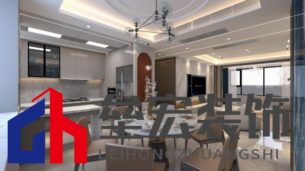 ??廚房為開放式設(shè)計(jì),這樣空間更大,廚房與餐廳相接處為吧臺(tái)設(shè)計(jì),人少時(shí)可以在吧臺(tái)上吃早點(diǎn),吧臺(tái)也可以作為廚房緩沖的中島臺(tái),廚房做出的飯菜可以通過吧臺(tái)過度到餐桌。 ??餐廳為圓桌,南北寬度比東西要大,所以酒柜考慮在北面窗戶處,這樣不會(huì)影響圓餐桌的擺放,餐廳背景墻兩側(cè)為護(hù)墻板,中間采用大理石奢石,猶如一副抽象畫,高端且優(yōu)雅。