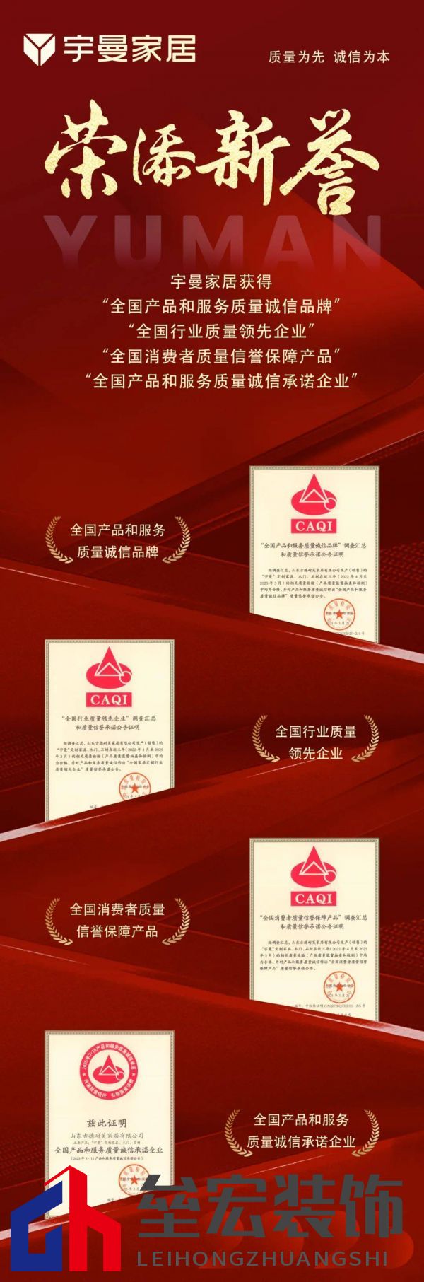 | 質量為先,誠信為本。3月15日,在迎來第43個國際消費者權益日之際,宇曼家居在中國質量檢驗協(xié)會開展的“產品和服務質量誠信承諾”主題活動中,榮獲“全國消費者質量信譽保障產品”、“全國產品和服務質量誠信品牌”、“全國行業(yè)質量領先企業(yè)”、“全國產品和服務質量誠信承諾企業(yè)”4項重要殊榮。  中國質量檢驗協(xié)會是全國產品質量監(jiān)督檢驗領域的專業(yè)機構,致力于傳遞質量信任、引導質量消費,以切實維護消費者合法權益。對于能夠獲得中國質量檢驗協(xié)會的認可,將賦予宇曼家居在深耕人居美好生活空間領域增添一份驅動力。 01# 質量為先 宇曼家居自成立以來,始終把“質量為先,誠信為本”的理念融入到生產的每一個細節(jié)中,我們嚴格遵循國際質量管理體系,從原材料的選擇到生產工藝的每一個環(huán)節(jié),都經(jīng)過層層把關。每一件產品都經(jīng)過嚴格的檢測,確保高質量交付,以品質承諾打造消費者放心之選。至今,憑借高質的生產力和領先的創(chuàng)新力,宇曼家居已發(fā)展成為柜門墻一體化定制品牌,致力于為用戶提供整家一體化空間應用解決方案。  02# 服務至上 宇曼家居堅持以客戶為中心,聚焦服務品質,優(yōu)化客戶體驗;為提升客戶滿意度,持續(xù)優(yōu)化服務模式,搭建線上小程序,客戶可實時追蹤訂單進度,享受24小時在線管家服務??焖夙憫绞酆蠓?,專人跟進解決,讓客戶售后無憂;宇曼將服務系統(tǒng)貫徹到每一個專賣店,承諾所出售產品均為正品、渠道合法、質量可靠,堅決杜絕假冒偽劣。并設有全國監(jiān)督服務熱線400-6868929,保障每一位用戶買的放心,安的省心、用的舒心。     以榮譽為鞭策,未來,宇曼始終堅持以消費者為中心,在強化自身品牌實力的同時,不斷優(yōu)化產品質量,提升終端服務,為消費者提供更多優(yōu)質的家居解決方案。 來源:宇曼家居 |