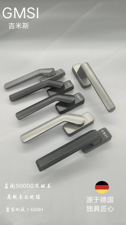 ??3. 把手系列:時(shí)尚舒適,經(jīng)久耐用 ??GMSI 吉米斯的把手系列產(chǎn)品,以其多樣的款式和出色的質(zhì)感備受青睞。無論是簡約現(xiàn)代的直線條設(shè)計(jì),還是優(yōu)雅流暢的曲線造型,都能滿足不同消費(fèi)者的審美需求。把手表面經(jīng)過高級(jí)處理,觸感舒適,且具有良好的耐磨性和耐腐蝕性。品牌承諾啟閉 50000 次以上,鹽霧測試大于 600H,這意味著即使在潮濕、多鹽霧的環(huán)境中,把手依然能保持亮麗如新,正常使用。無論是家居裝修還是商業(yè)空間,GMSI 吉米斯的把手都能為門窗增添一份精致與品質(zhì)。