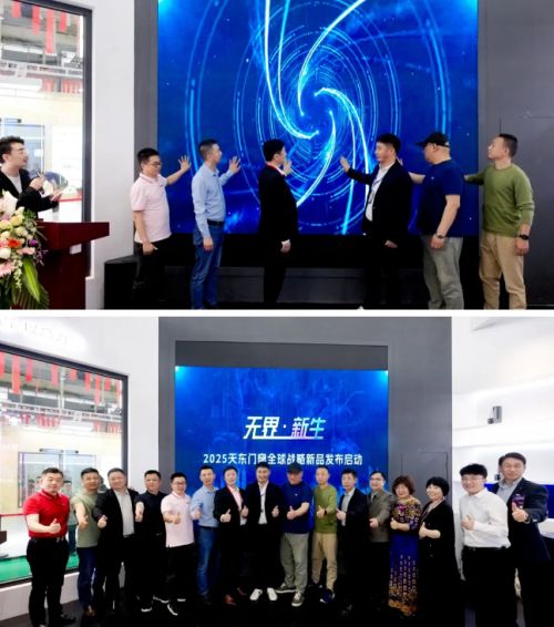 ??最后,發(fā)布會(huì)迎來(lái)高潮環(huán)節(jié),袁志董事長(zhǎng)攜手許順友、劉廣貴、張永志、王東旭、國(guó)肖龍五位嘉賓,共同按下“無(wú)界·新生光影啟動(dòng)裝置”。隨著大屏呈現(xiàn)“邊界消融”的動(dòng)態(tài)效果,主持人宣布:“2025天東門窗全球戰(zhàn)略新品正式啟航!”現(xiàn)場(chǎng)掌聲雷動(dòng),象征行業(yè)傳統(tǒng)壁壘被打破,開(kāi)放共生的新生態(tài)正式開(kāi)啟。