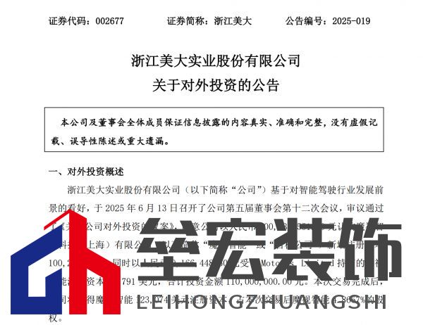 ??日前,“集成灶第一股”浙江美大發(fā)布公告,擬跨界投資智能駕駛領(lǐng)域。 ??公告顯示,基于對智能駕駛行業(yè)前景的看好,浙江美大于6月13日召開董事會(huì)會(huì)議,同意以1.01億元認(rèn)購魔視智能科技(上海)有限公司(下稱“魔視智能”)新增注冊資本10.03萬美元。 ??同時(shí),公司以916.64萬元受讓Motovis Limited持有的魔視智能注冊資本2.28萬美元,合計(jì)投資金額1.1億元人民幣。交易完成后,浙江美大將持有魔視智能12.31萬美元注冊資本,占其增資后總股本的4.8657%。
