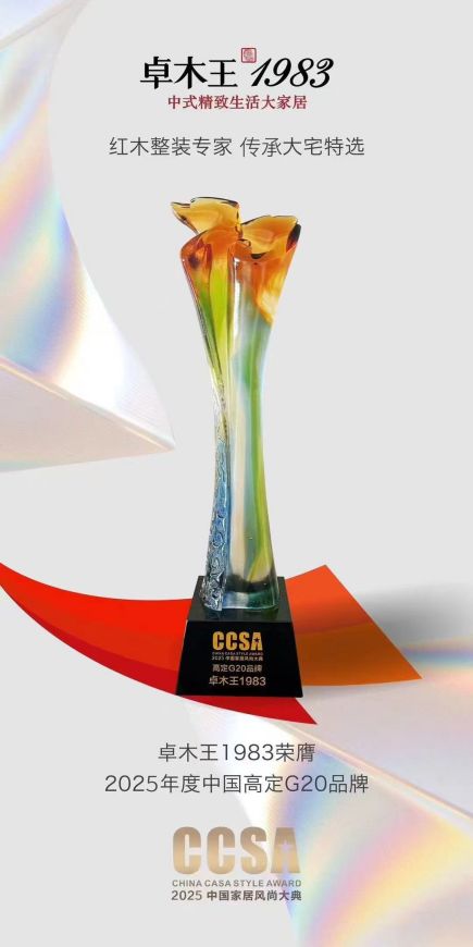 “高定G20品牌獎(jiǎng)”評(píng)選標(biāo)準(zhǔn)極為嚴(yán)苛,聚焦產(chǎn)品品質(zhì)、設(shè)計(jì)創(chuàng)新、服務(wù)體驗(yàn)等核心維度。紅木整裝創(chuàng)ling品牌卓木王憑借其在中式高定領(lǐng)域的卓越表現(xiàn)與強(qiáng)大品牌影響力,從眾多競(jìng)爭(zhēng)者中脫穎而出,成功實(shí)現(xiàn)獎(jiǎng)項(xiàng)蟬聯(lián),彰顯了品牌在高端定制賽道無(wú)可爭(zhēng)議的持續(xù)引領(lǐng)力。