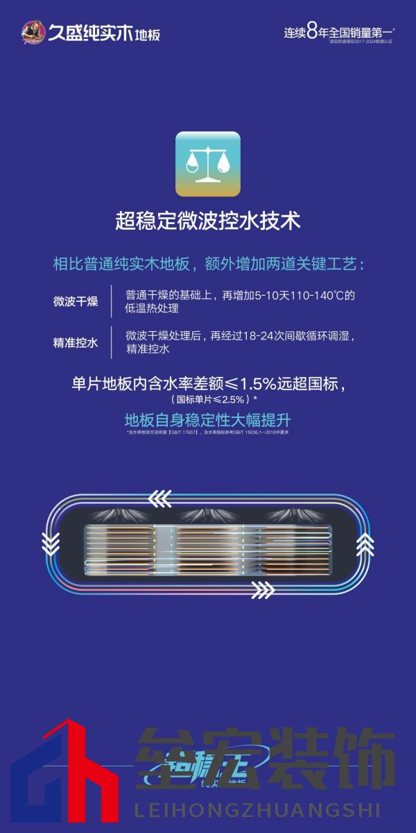 ??創(chuàng)新技術(shù)組合拳 ??①超穩(wěn)定微波控水技術(shù): ??比普通純實(shí)木地板額外增加10天以上的“微波干燥”和“精準(zhǔn)控水”2道關(guān)鍵工藝,地板自身穩(wěn)定性大幅提升,木材含水率更均勻,單片內(nèi)差額≤1.5%遠(yuǎn)優(yōu)國(guó)標(biāo)(國(guó)標(biāo)單片≤2.5%)。