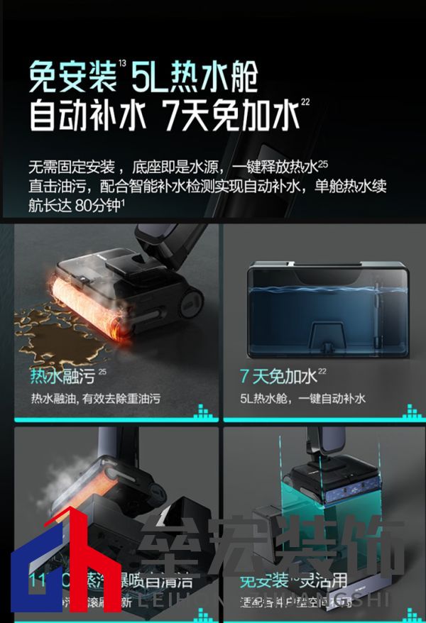 ??面對(duì)廚房地面風(fēng)干的醬油漬、凝固的油污,芙萬(wàn)科學(xué)家系列搭載了一鍵增壓爆噴科技。通過高壓水流以15°的黃金銳角精準(zhǔn)噴射,能在10秒內(nèi)迅速瓦解頑固污漬。地面清潔過后,將洗地機(jī)放至底座,5L大容量熱水艙,無(wú)需安裝,一鍵即可釋放117℃的高溫?zé)崴?,?qiáng)力蒸汽爆噴自清潔溶解重油污,讓最棘手的廚房清潔難題迎刃而解。