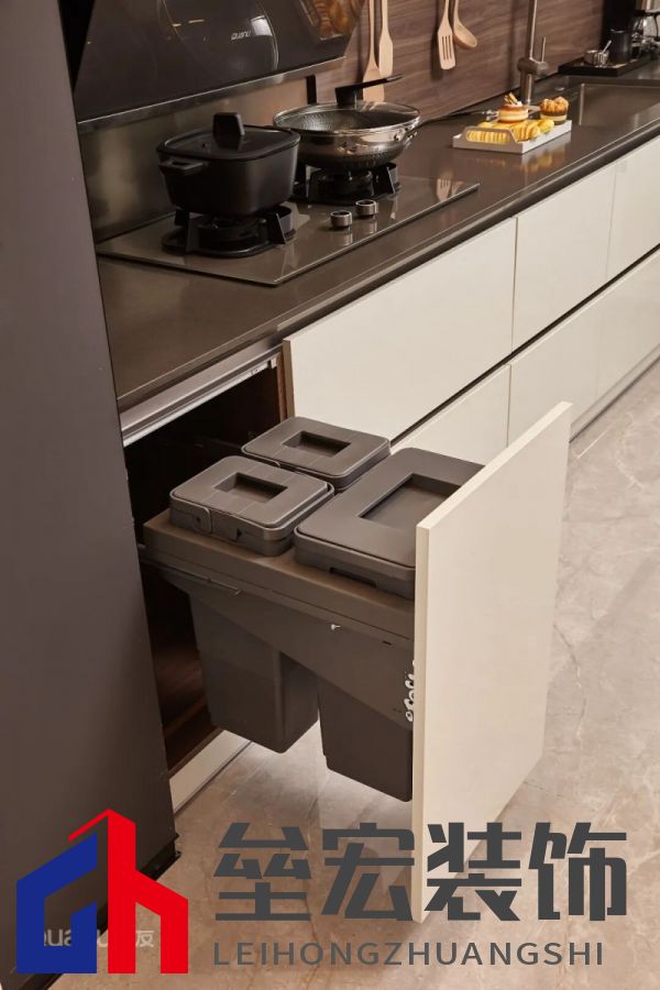 ??④隱藏式垃圾桶 ??傳統(tǒng)垃圾桶不僅占地方,還容易滋生蚊蟲(chóng)、散發(fā)異味。不如直接將垃圾桶嵌入櫥柜內(nèi)部,需要時(shí)輕拉即可使用,用完推回還能隱藏收納,既釋放了寶貴空間,又讓廚房時(shí)刻保持干凈衛(wèi)生。